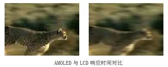 LCD响应速度受限于液晶材料,通常是以毫秒(ms)为单位。AMOLED 具有极快响应速度,响应速度只有LCD的1/1000,通常以微秒(μS)为单位。AMOLED在播放快速运动图像时无残影、无拖尾,能够保证画面的清晰、流畅和真实的效果。