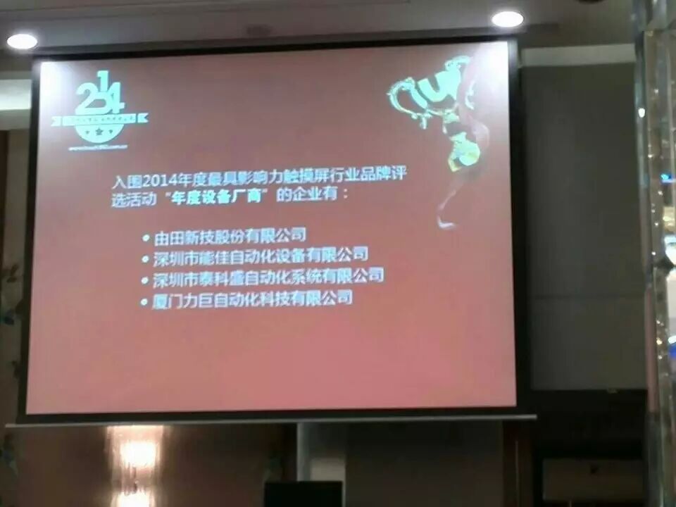 在2014年年度最具影响力触摸屏行业品牌评选活动中,力巨科技成功入围“年度设备厂商”这一奖项。 此次入围是业内人士对力巨科技设备的高度肯定,国内设备经过十多年的积累与沉淀,走入了高大上的行列。力巨科技/希盟科技已与多家上市的集团公司、国际型的大公司形成了长期稳定的合作关系,并得到触摸屏企业的一致好评。
