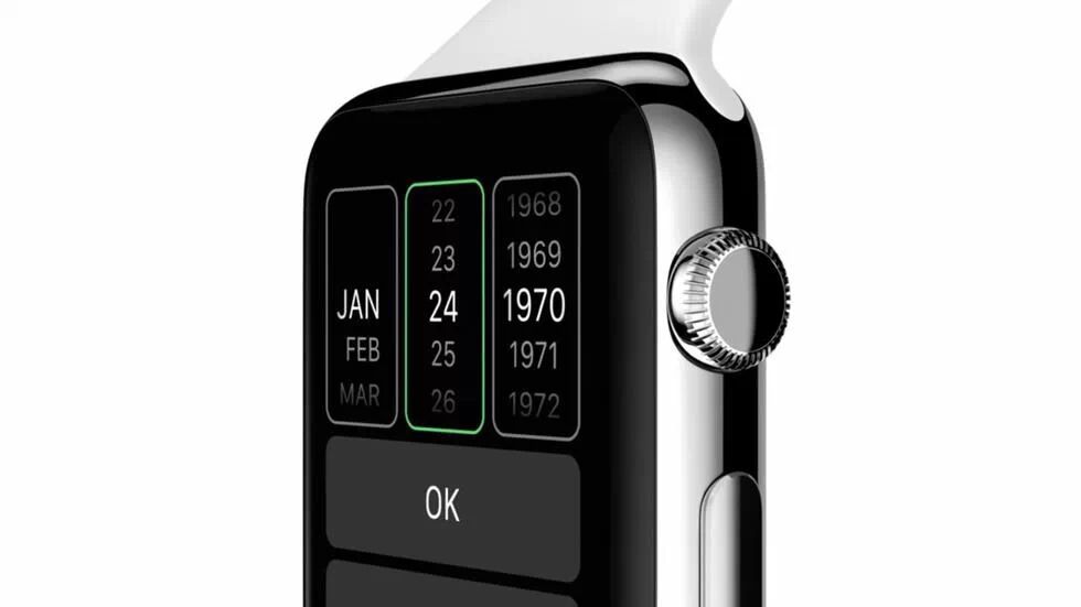 看到那个类似拨号盘的东西吗?它是Apple Watch的“数码表冠(Digital Crown)”旋钮,你可以通过旋转它浏览Apple Watch的软件,按下它即可让你回归主屏。
