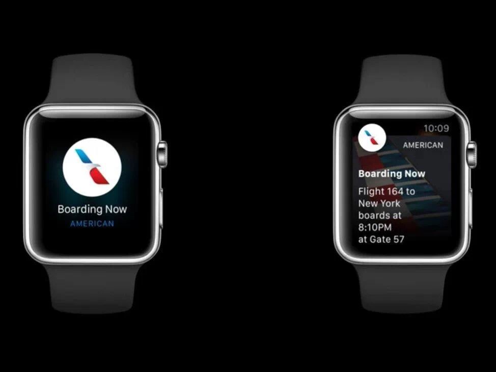 第三方应用也能在Apple Watch上显示相关信息。比如,当你的航班即将开始登机时,你会收到通知。
