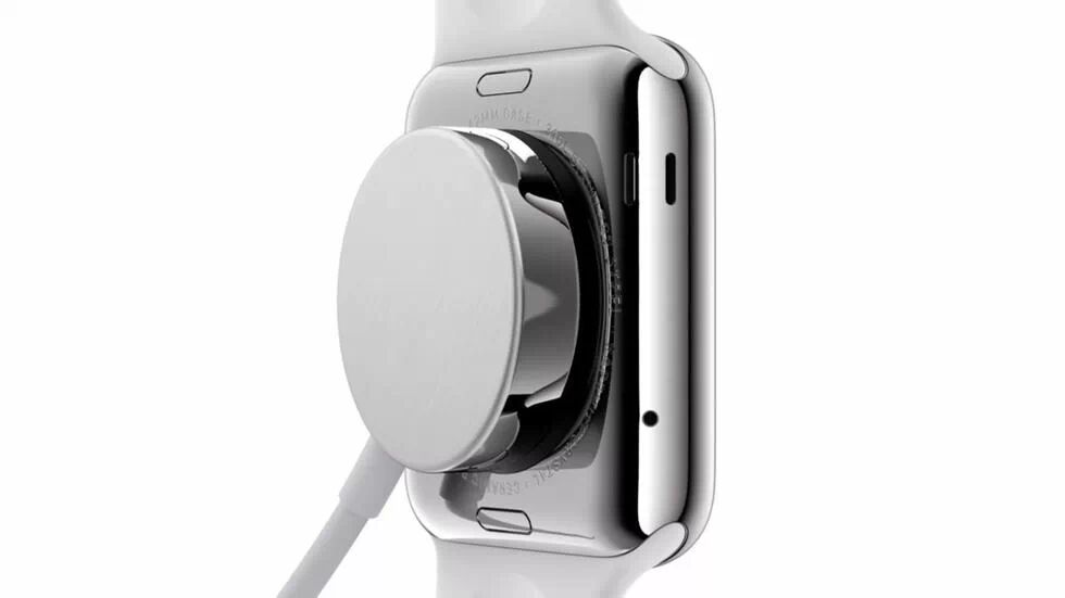 Apple Watch可通过这种磁充电器充电。苹果表示,你每晚都必须给智能手表充电。