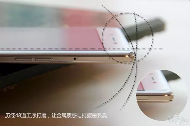 除了HTC,在近期OPPO发布的R7/R7 Plus上,也赋予了智能手机新的工艺。OPPO宣称R7/R7 PlusR7的设计灵感来源于小提琴的琴颈,颈曲线优雅顺滑,有近乎完美的握持感。将琴颈的曲线应用到R7的侧边,形成了这条“提琴雅弧”。